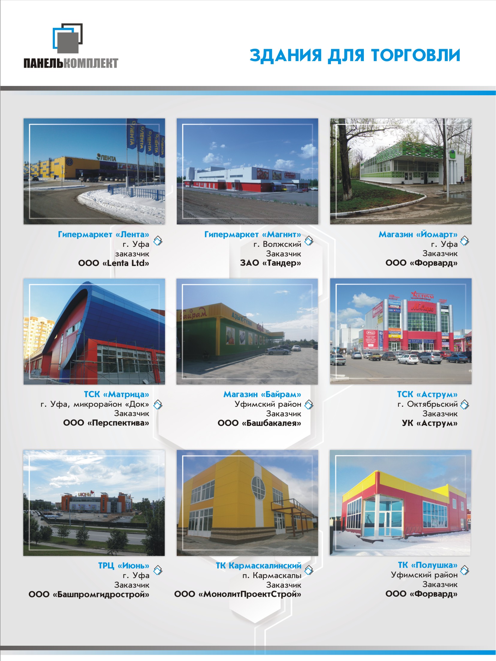 Современное промышленное и гражданское строительство немыслимо без применения современных материалов и методов строительства. Многообразие задач, встающих перед собственником здания, проектировщиками, строителями, не всегда позволяет принимать оптимальные решения. Специалисты ООО «Панелькомплект» более 17 лет профессионально занимаются как фасадами и кровлями современных зданий, так и комплектами быстровозводимых зданий.