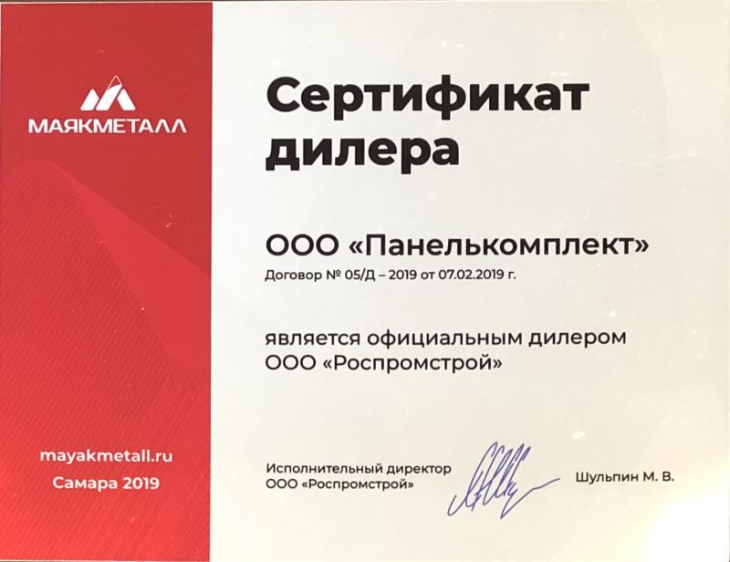 Сертификат дилера