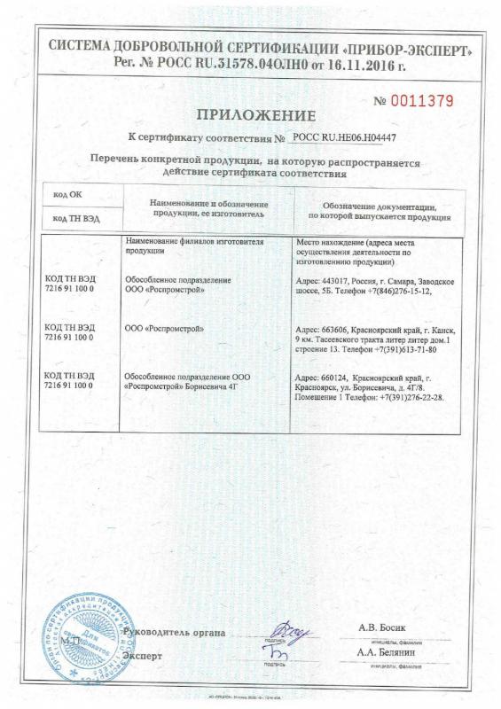 Сертификат соответствия профлист приложение